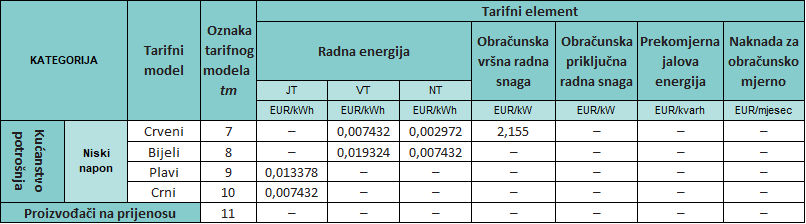 Ukupna naknada za korištenje mreže sastoji se od tarifnih stavki za prijenos i distribuciju električne energije (Tablica 3).