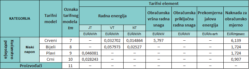 Tarifne stavke za kupce kategorije kućanstvo za prethodna razdoblja dostupna su u arhivi.
