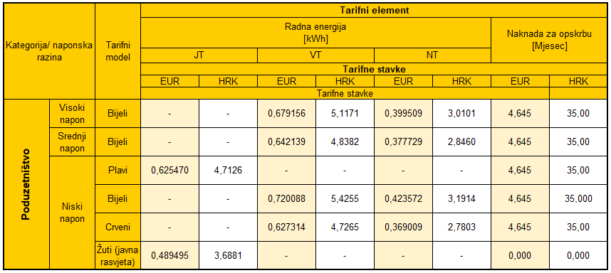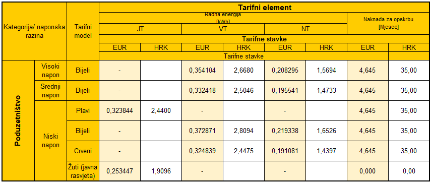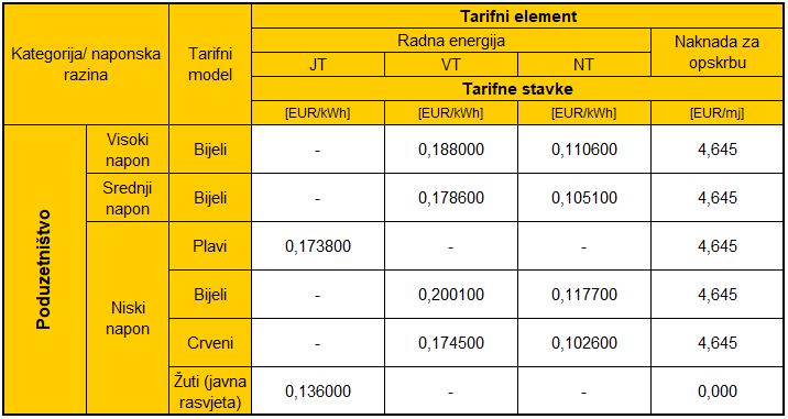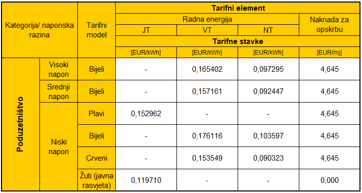Tarifne stavke za kupce kategorije poduzetništvo za prethodna razdoblja dostupna su u arhivi.
