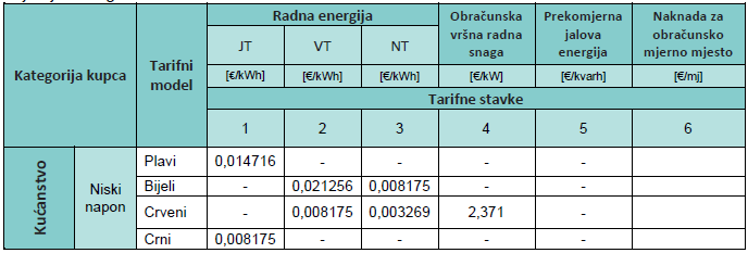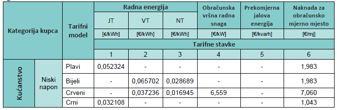 Tarifne stavke za kupce kategorije kućanstvo za prethodna razdoblja dostupna su u arhivi.