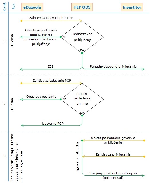 Hodogram postupka jednostavnog priključenja prikazan je na slici u nastavku, a detaljan opis je dan u članku 8. Pravila o priključenju na distribucijsku mrežu.