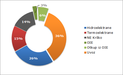 Struktura udjela pojedinih izvora električne energije
